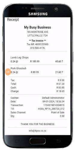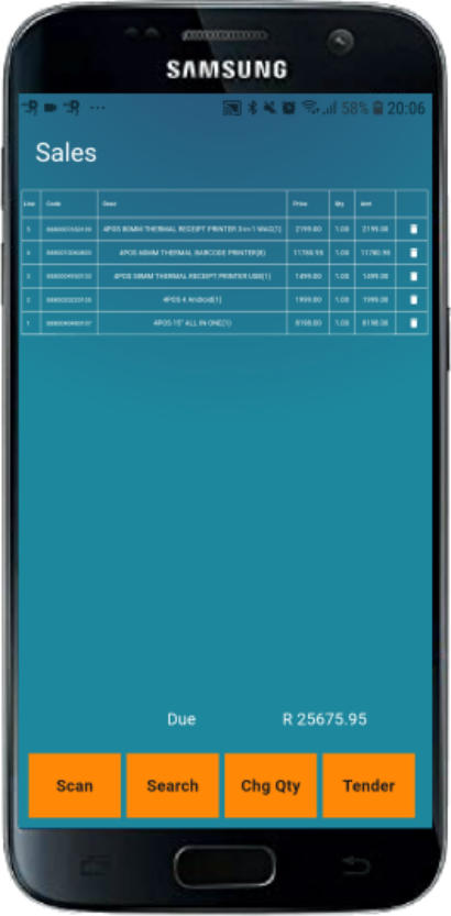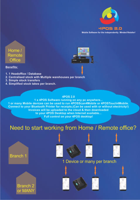The process in Words :1.Install & create your items in your 4POS Desktop version.2. Upload your data to the cloud3. Install the 4POSScan App4. Enter your 4POS Voucher number5. Your pricing will be automatically downloaded6. Start selling7. Finalise the sale to Cash / Card / EFT / Account8. Print the receipt to your 4POS BlueTooth Printer.9. Sales will automatically be uploaded to the cloud as you go.10. Whenever you want, download sales to your 4POS Desktop.- Now check stock, sales & turnovers :- Dayend Totals- Itemised Sales- Itemised Stock Holding- Inter Branch Transfers